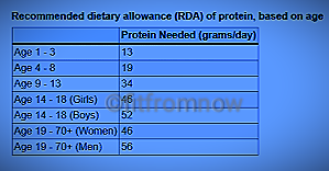 Different people need different amounts of protein. The general recommendation for muscle growth is 1.5-2 grams per kilogram body weight per day, so it varies from person to person depending on weight and goals.